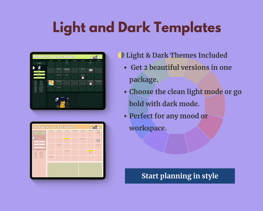 Perfect for planners who love a softer, feminine vibe πŸŽ€, but still want the structure to stay on track. And guess what? Your download also includes the πŸ–€ Dark Mode version, for when you want to switch it up!